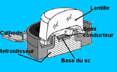 La LED convertit le courant électrique directement en lumière. Cette lumière n'est pas émise pas un filament comme dans les lampes standard, mais par un semi-conducteur sous la forme d'un chip plat. Ce dernier est constitué de deux zones polarisées différemment : la bande n avec un excès d'électrons et la bande p avec un déficit d'électrons. Un processus recombine et égalise les excès et déficits d'électrons à la jonction pn. Durant ce processus, l'énergie est dégagée sous forme de photon, c'est à dire de lumière visible. Cette lumière est monochromatique: elle n'est composée que d'une seule longueur d'onde. Le blanc ou la couleur émise dépend de la nature du semi-conducteur. Une lentille polymère placée devant le chip protège et sert de lentille optique.